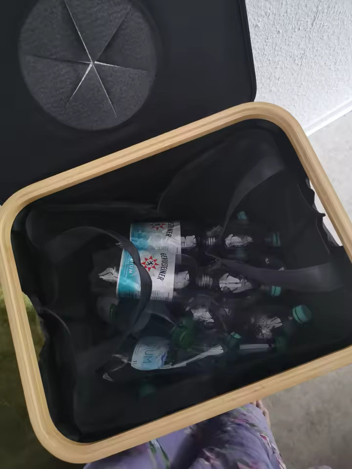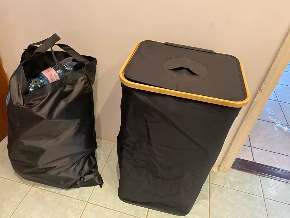 Wyjmowany worek pozwala szybko zebrać butelki i wygodnie przenieść je do sklepu lub automatu zwrotnego.